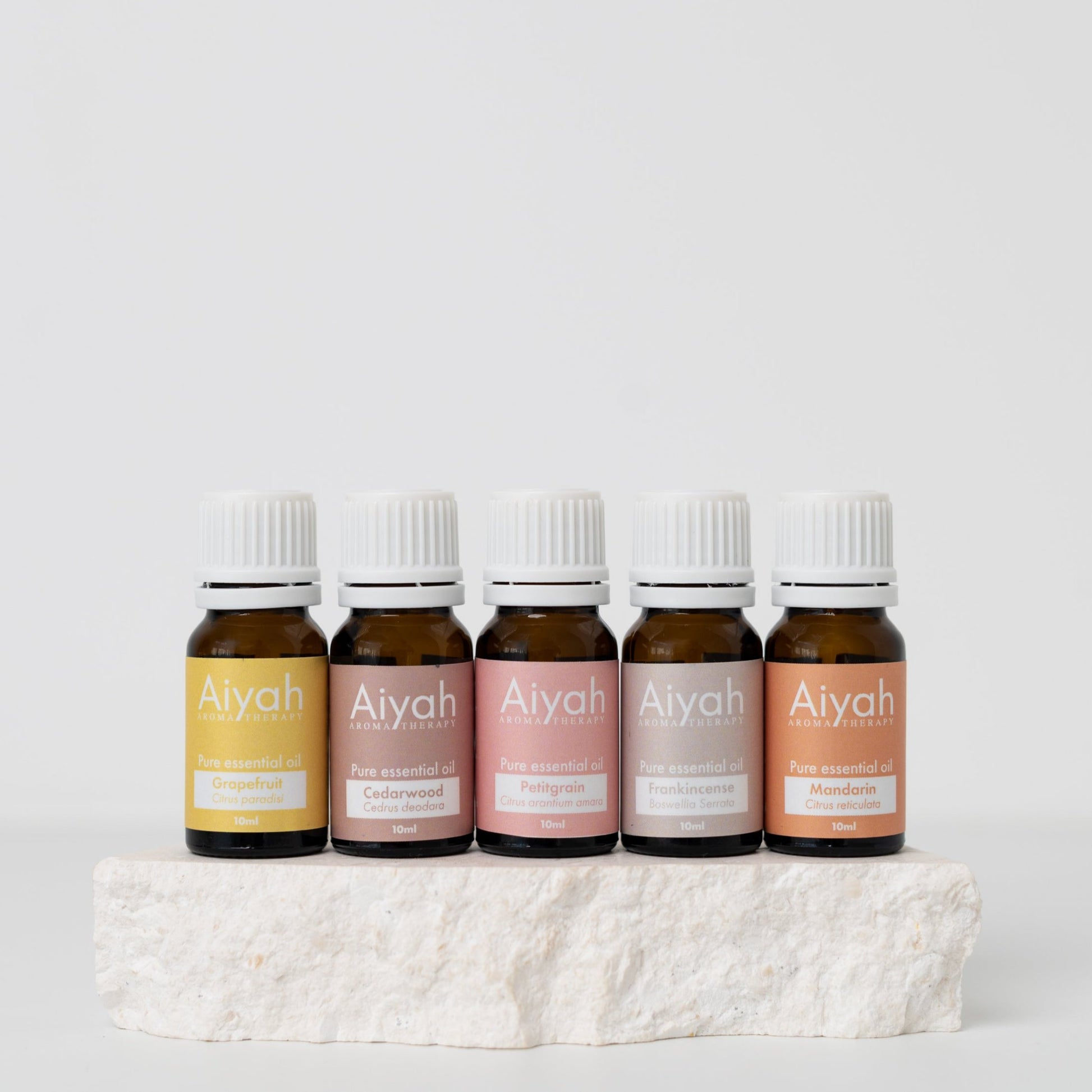 Each pack contains five varieties of pure essential oils in 10 mil bottles. 5 x 10ml bottles